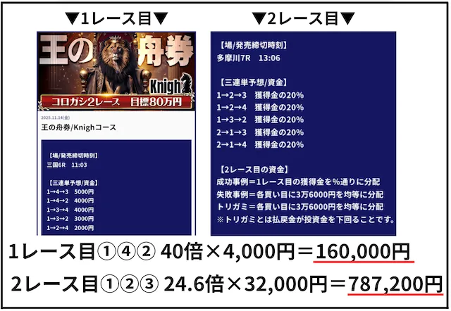 ’25/11/14 的中無料予想で787,200円獲得