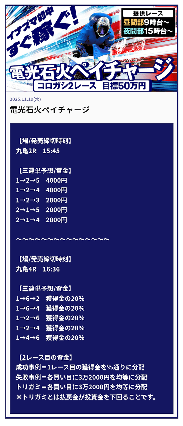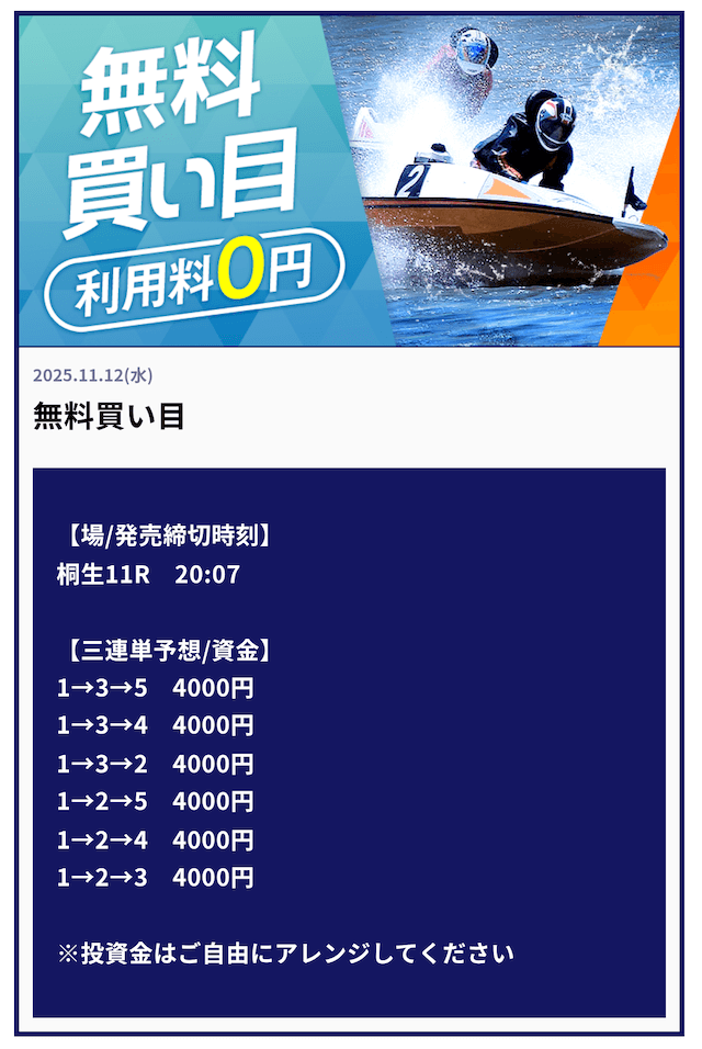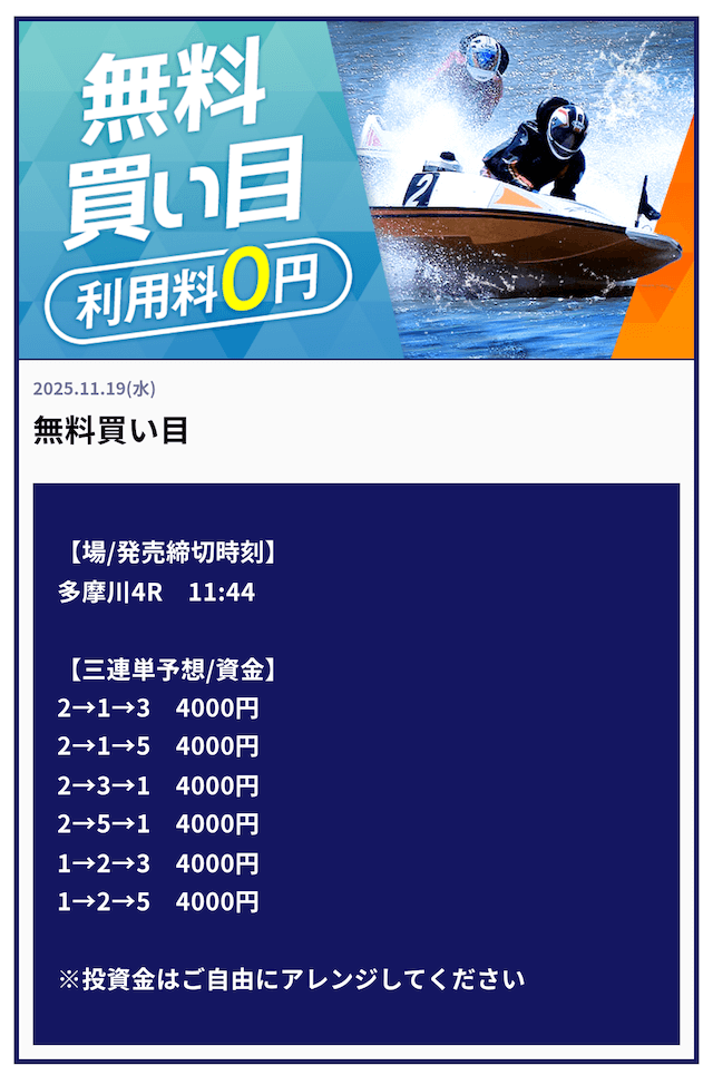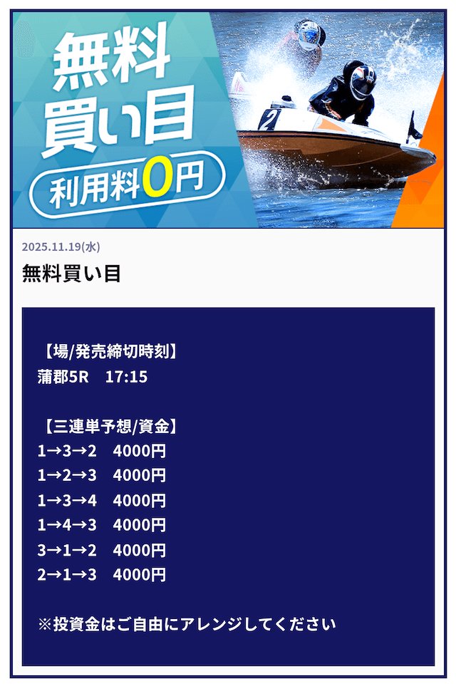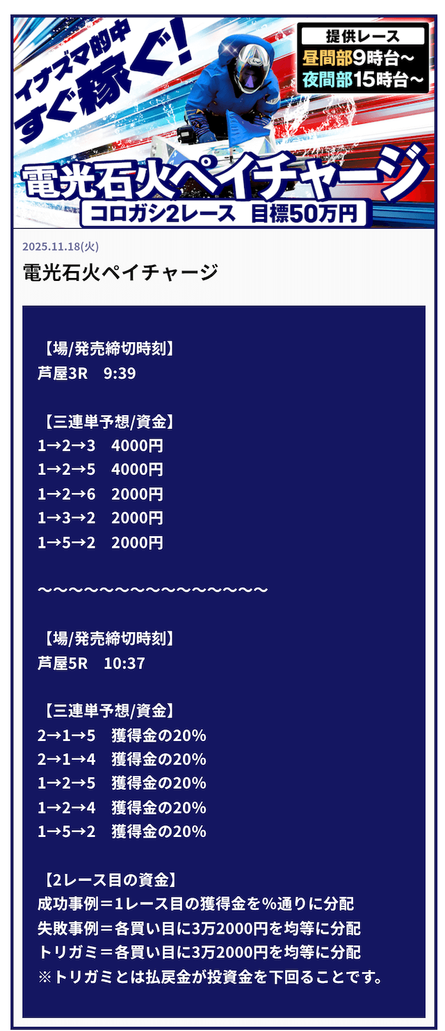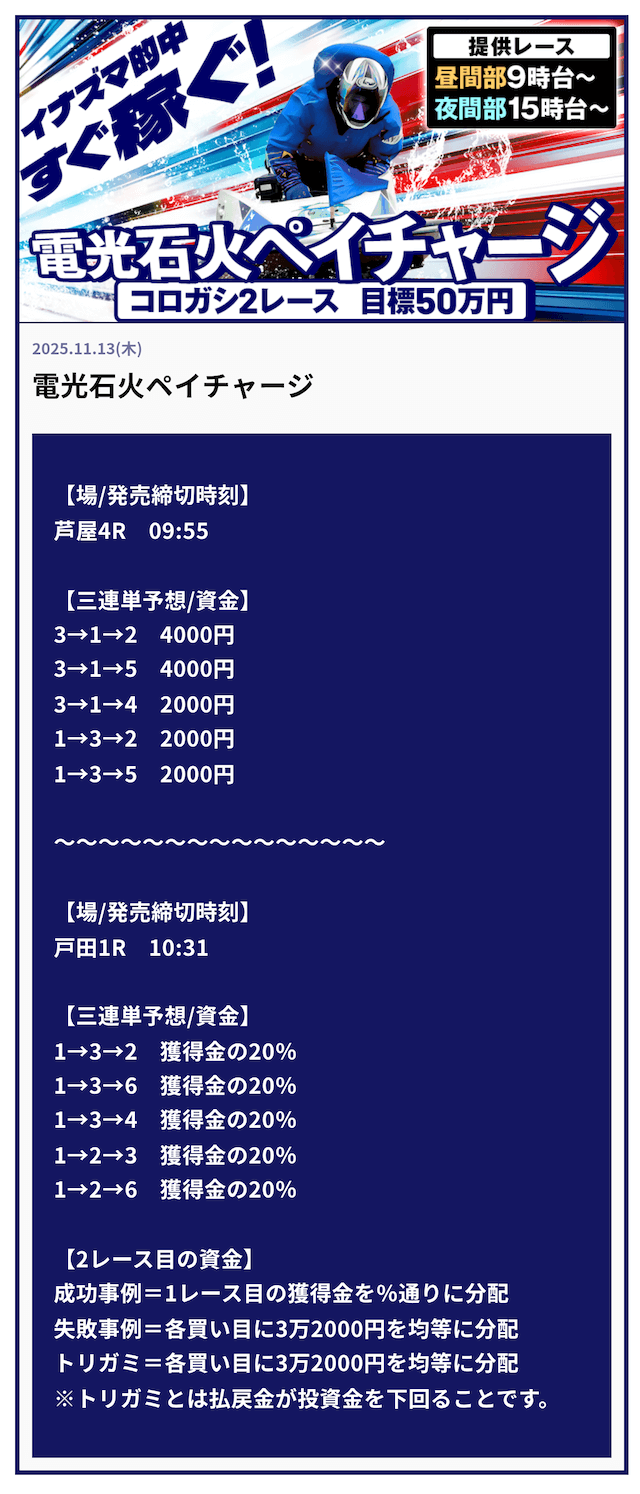 ’25/11/16 的中無料予想で50,000円獲得