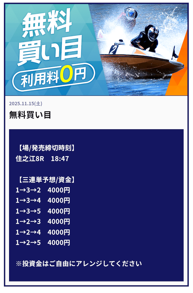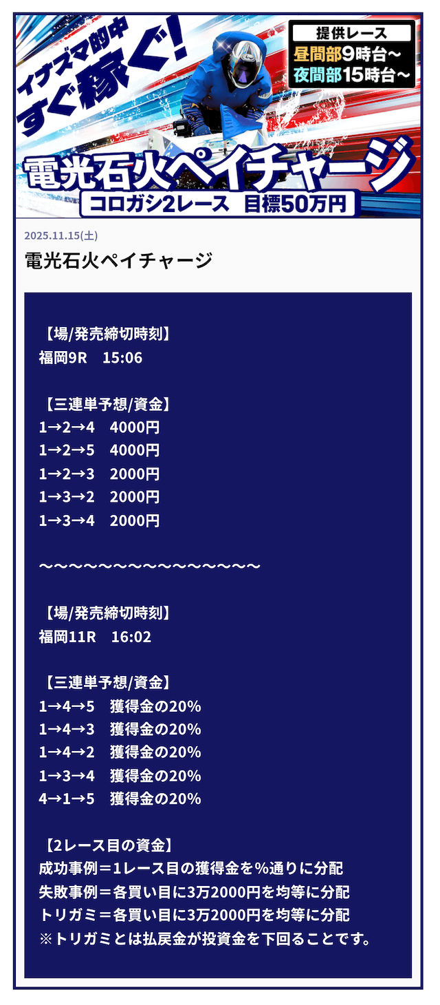 ’25/11/15 的中無料予想で50,800円獲得