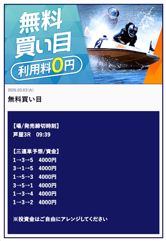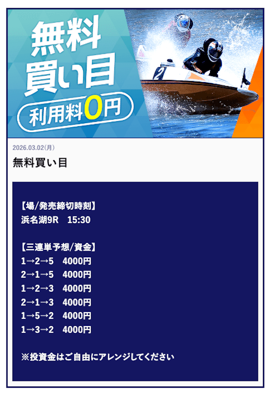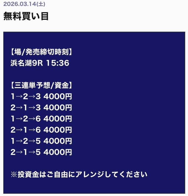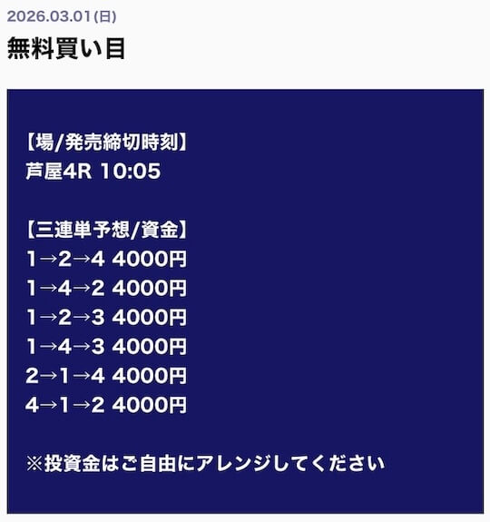 ’26/03/03 的中無料予想で34,000円獲得