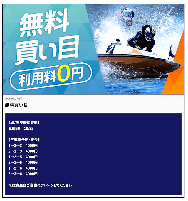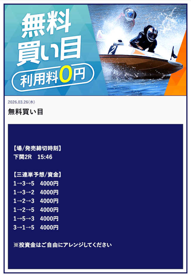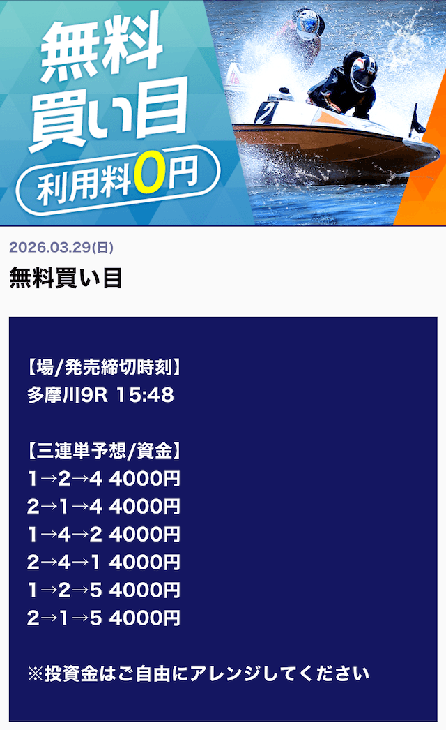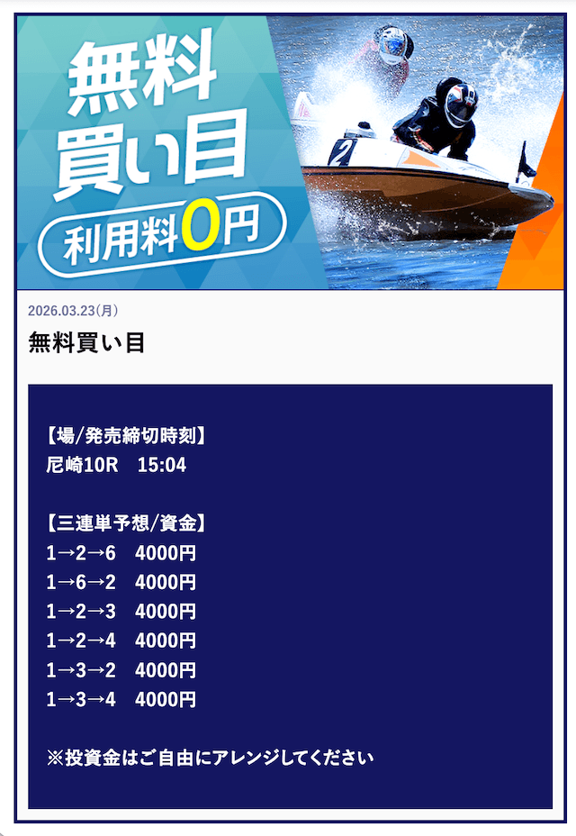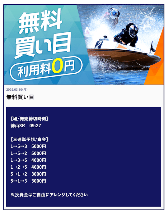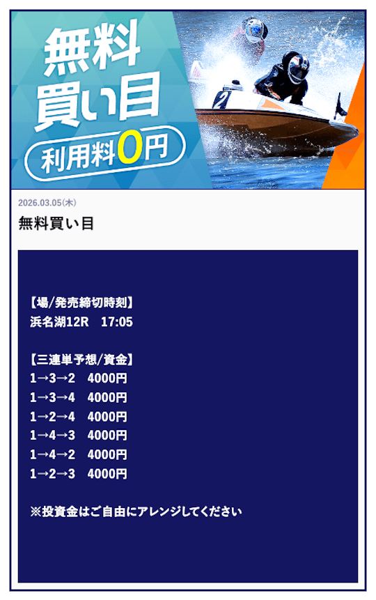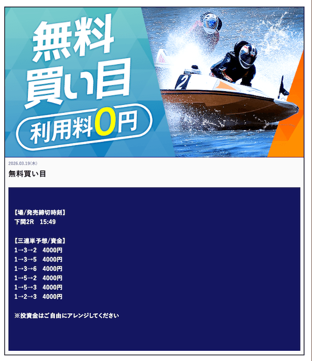 ’26/03/29 的中無料予想で80,000円獲得