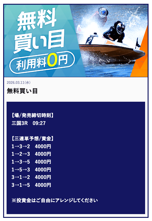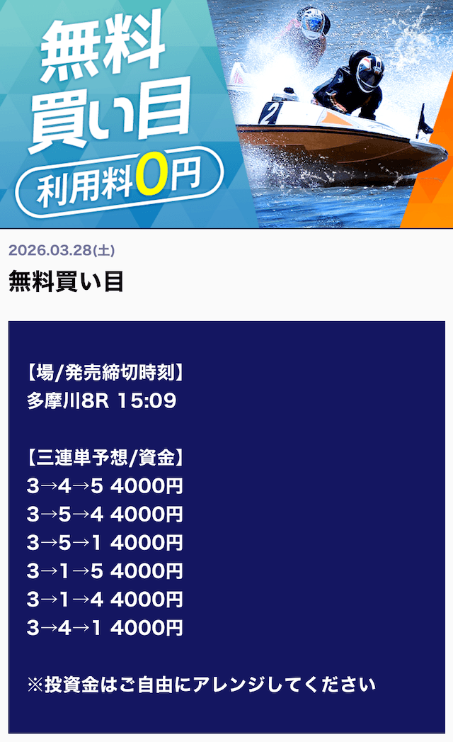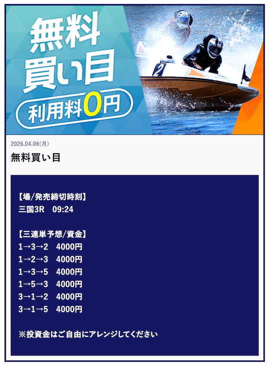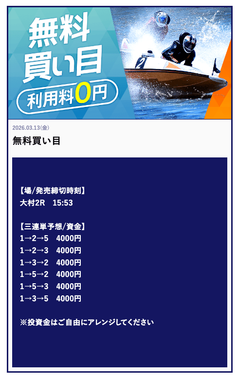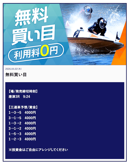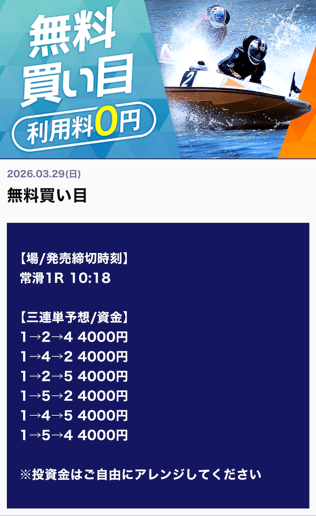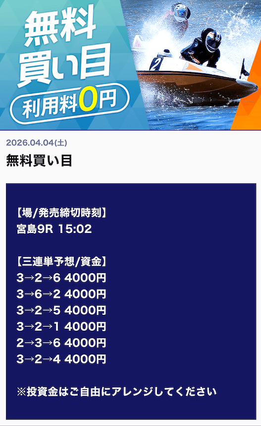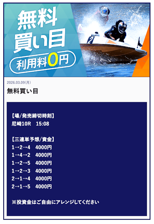 ’26/03/29 的中無料予想で80,000円獲得