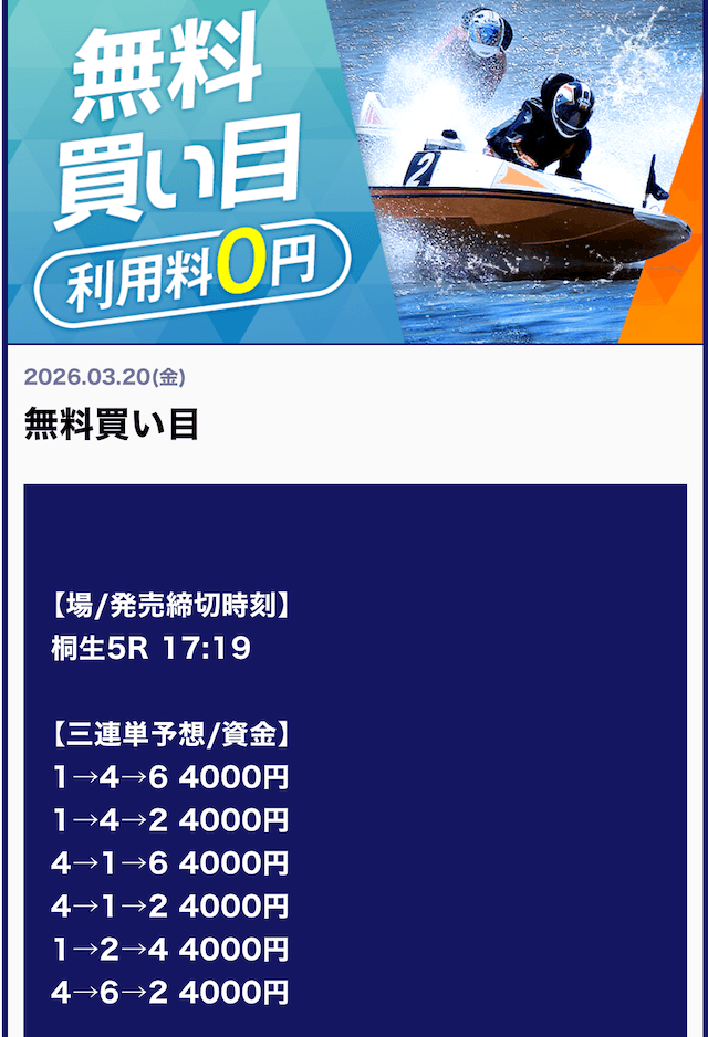 ’26/03/20 的中無料予想で36,400円獲得