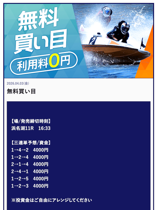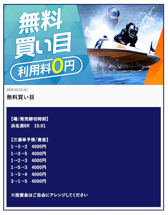 ’26/03/31 的中無料予想で132,400円獲得