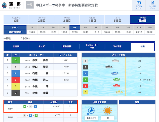 1号艇を切っているので的中率が気になる人もいるでしょうが、その心配は不要。