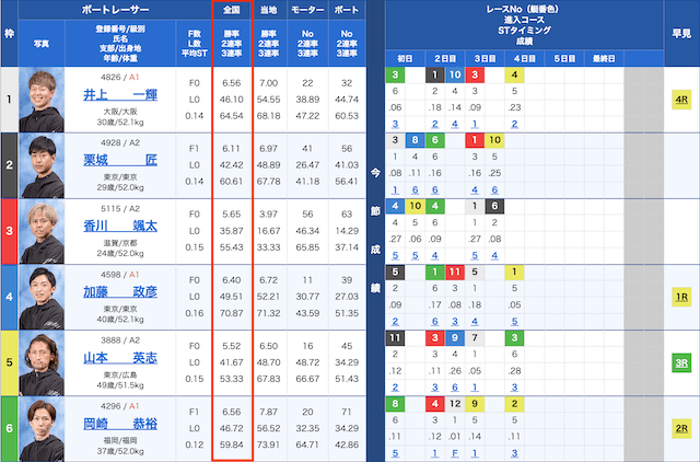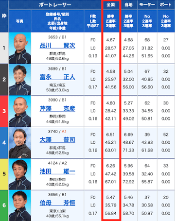 というのも、全国勝率は過去6ヶ月のレース結果を元に導き出した指標となるため。