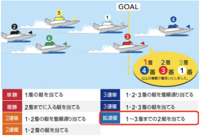 | 拡連複 | 1〜3着までに入る2艇を当てる | ★★★ |