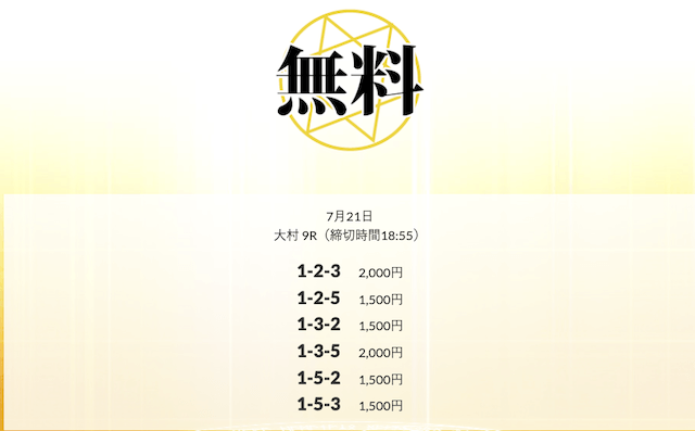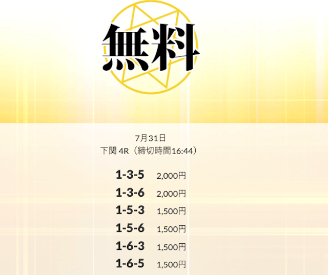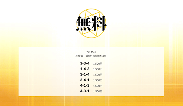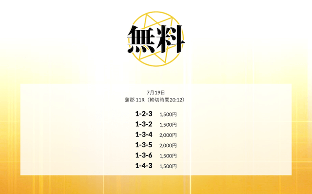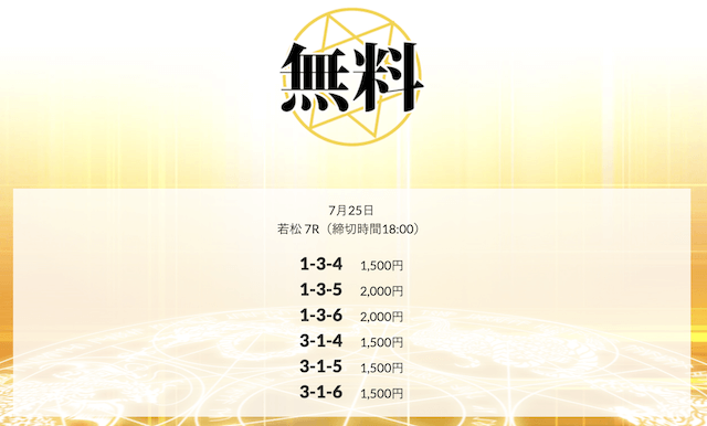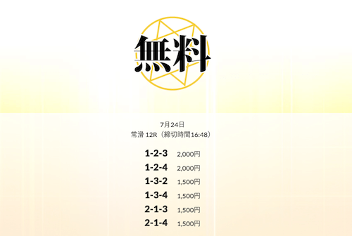 ’25/07/15 的中無料予想で13,600円の払い戻しを獲得