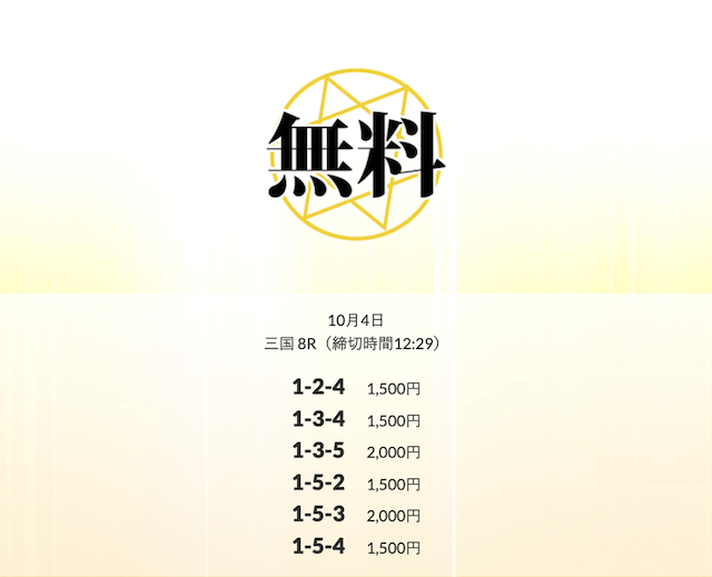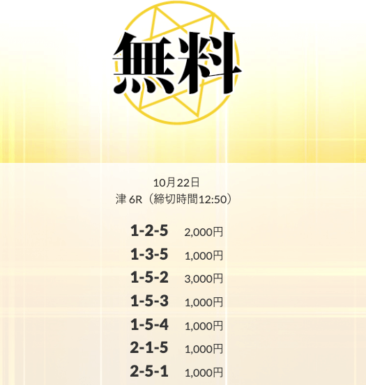 ’25/10/01 的中無料予想で15,450円の払い戻しを獲得