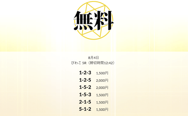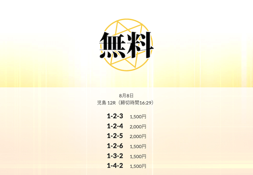 ’25/08/20 的中無料予想で17,800円の払い戻しを獲得