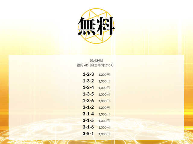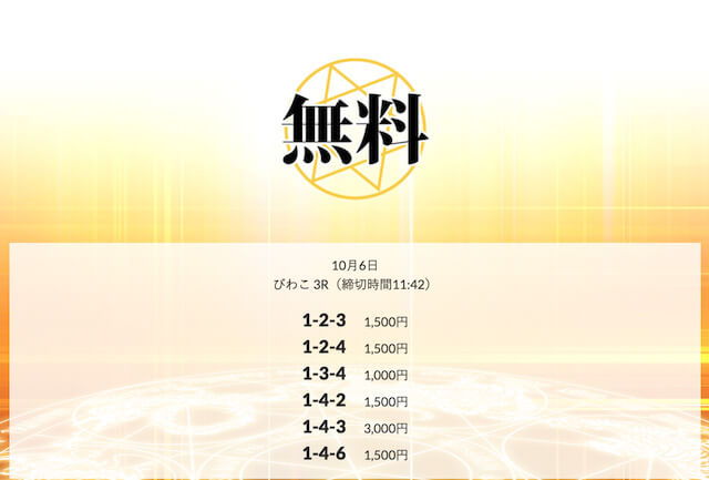 ’25/10/23 的中無料予想で11,900円の払い戻しを獲得
