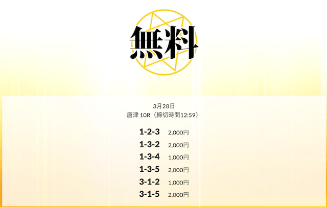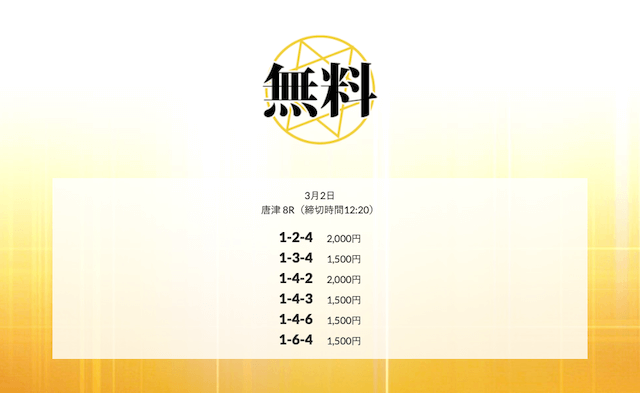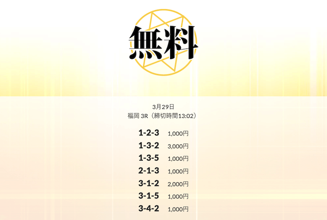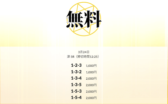 ’25/03/25 的中無料予想で21,600円の払い戻しを獲得