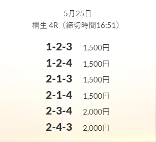 ’25/05/24 的中無料予想で22,200円の払い戻しを獲得