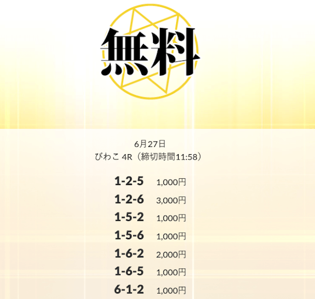 ’25/06/12 的中無料予想で11,100円の払い戻しを獲得