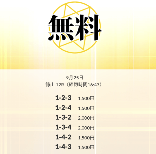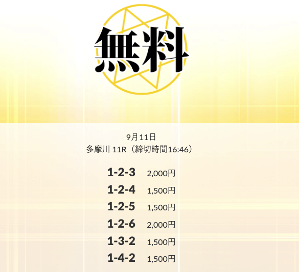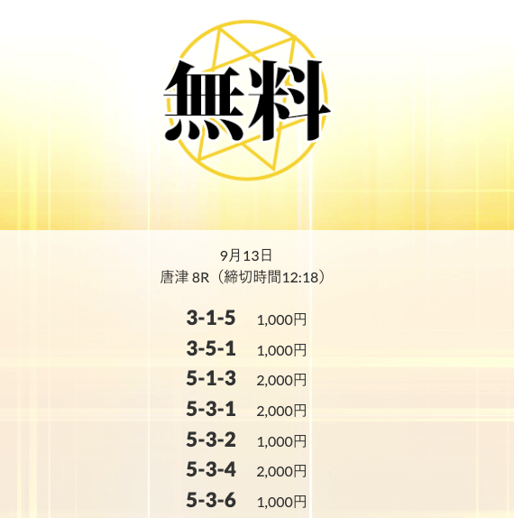 ’25/09/08 的中無料予想で15,900円の払い戻しを獲得