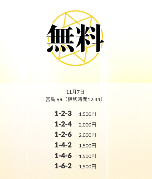 ’24/11/11 的中無料予想で12,500円の払い戻しを獲得