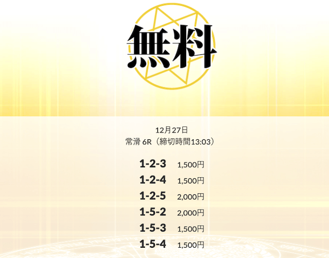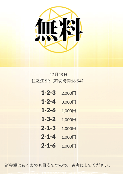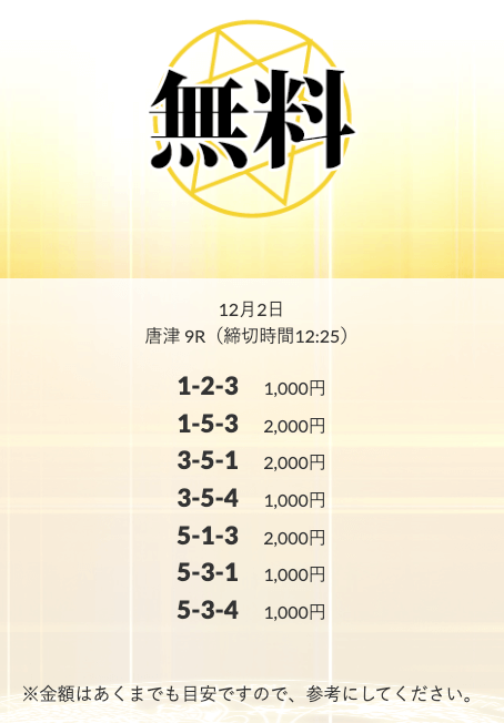 ’25/12/01 的中無料予想で16,600円の払い戻しを獲得