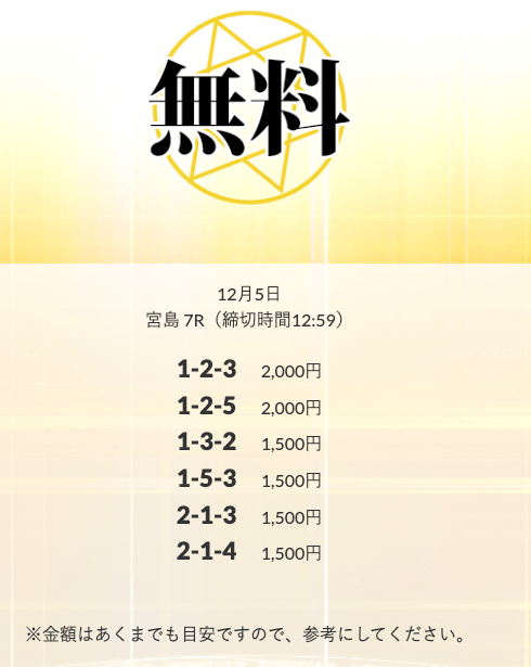 ’25/12/10 的中無料予想で29,500円の払い戻しを獲得