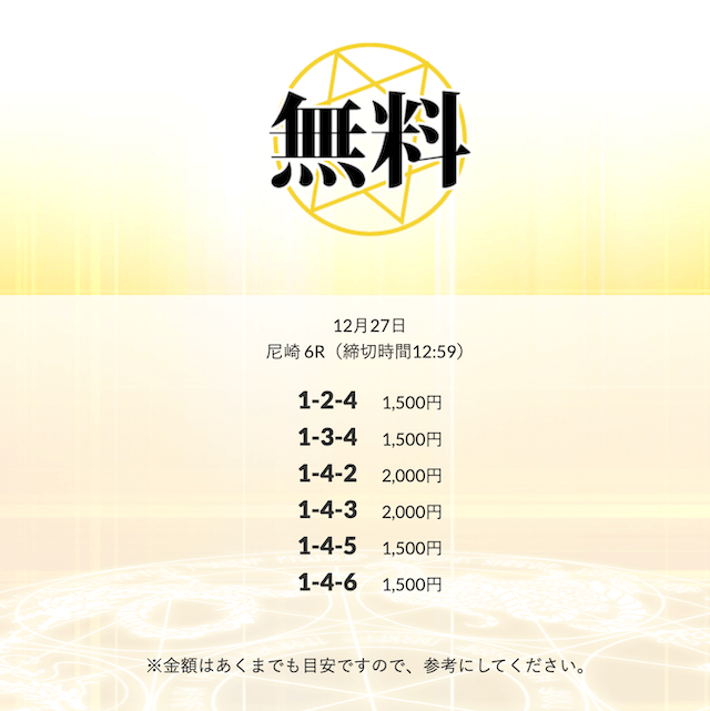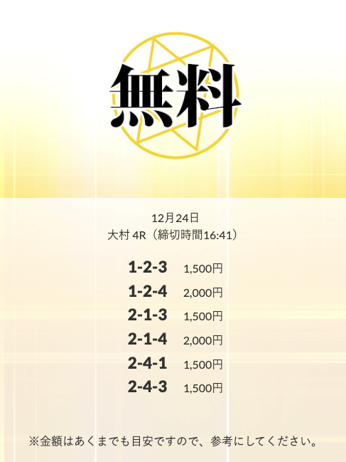 ’24/12/23 的中無料予想で13,900円の払い戻しを獲得