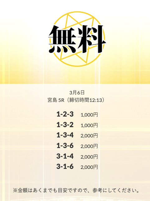 ’25/03/06 的中無料予想で13,400円の払い戻しを獲得