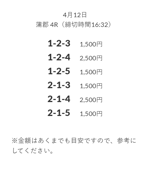 ’25/04/15 的中無料予想で32,600円の払い戻しを獲得