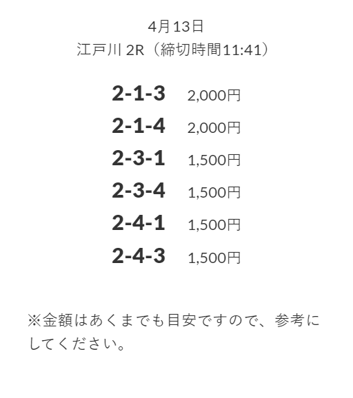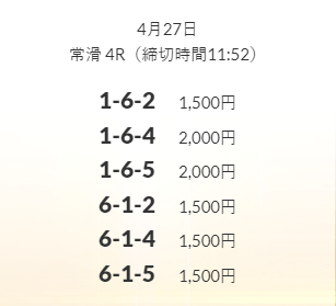 ’25/04/17 的中無料予想で34,200円の払い戻しを獲得