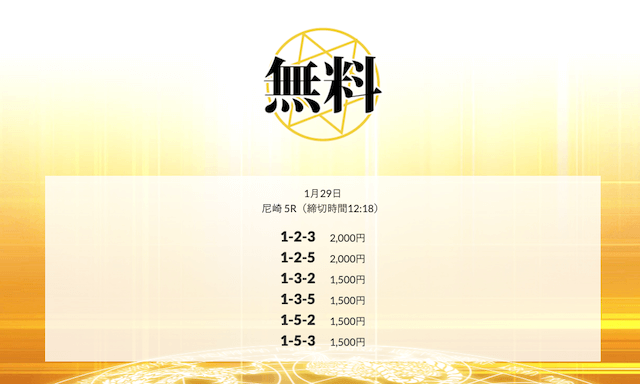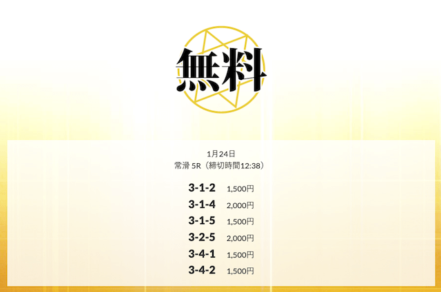 ’25/01/21 的中無料予想で23,200円の払い戻しを獲得