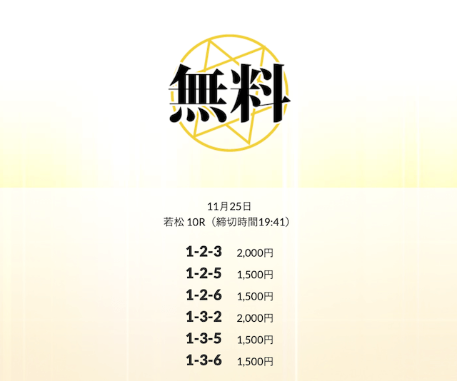 ’25/11/11 的中無料予想で17,700円の払い戻しを獲得