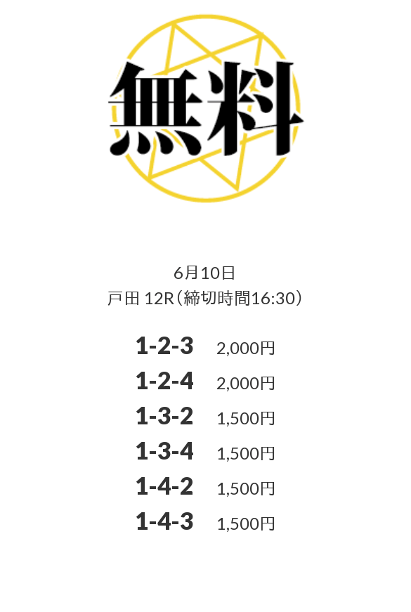 ’25/06/03 的中無料予想で17,000円の払い戻しを獲得