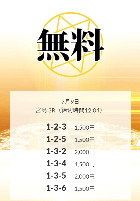 ’25/07/09 的中無料予想で15,000円の払い戻しを獲得