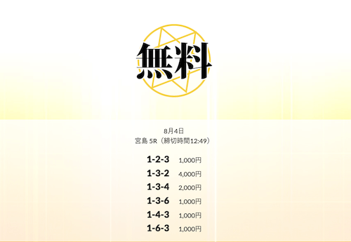 ’25/08/26 的中無料予想で22,600円の払い戻しを獲得