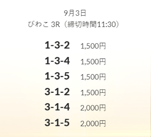 ’25/09/04 的中無料予想で35,600円の払い戻しを獲得