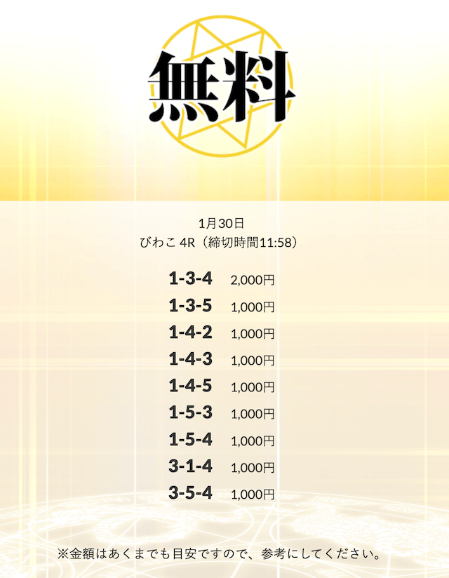 ’26/01/30 的中無料予想で49,800円の払い戻しを獲得