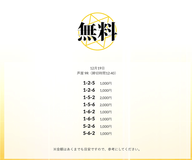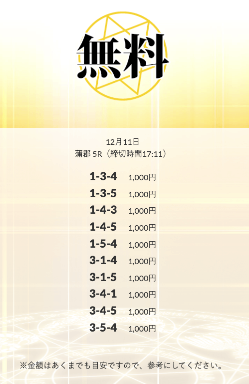 ’25/12/01 的中無料予想で16,600円の払い戻しを獲得