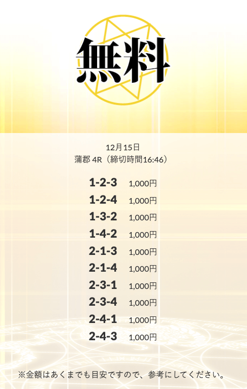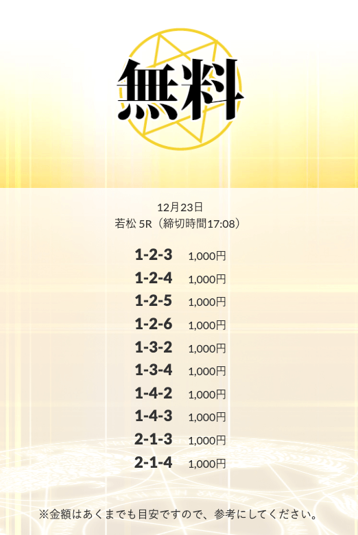 ’24/12/23 的中無料予想で13,900円の払い戻しを獲得