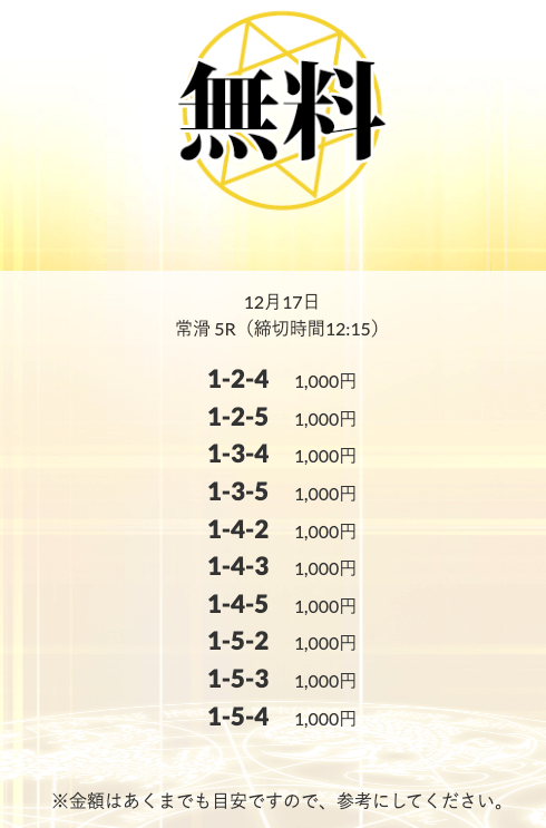 ’24/12/16 的中無料予想で17,200円の払い戻しを獲得