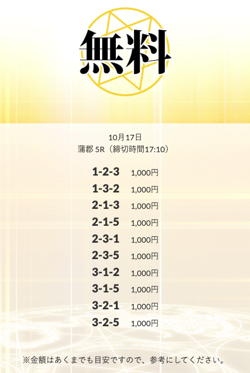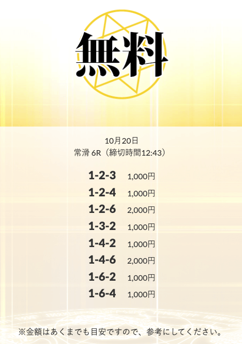 ’25/10/16 的中無料予想で13,800円の払い戻しを獲得