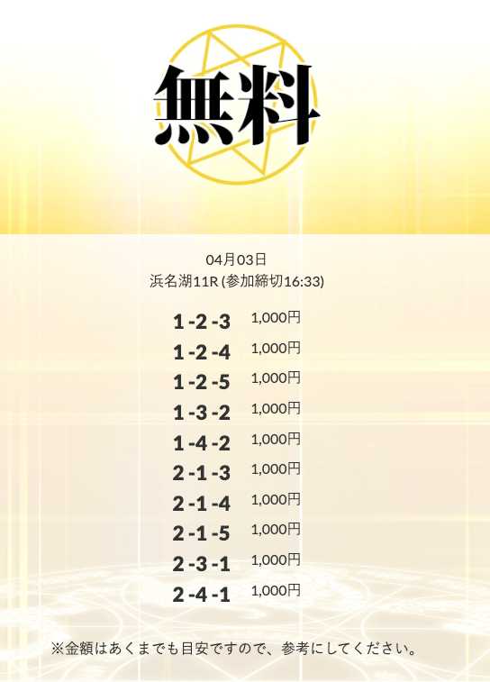 ’25/04/03 的中無料予想で14,800円の払い戻しを獲得