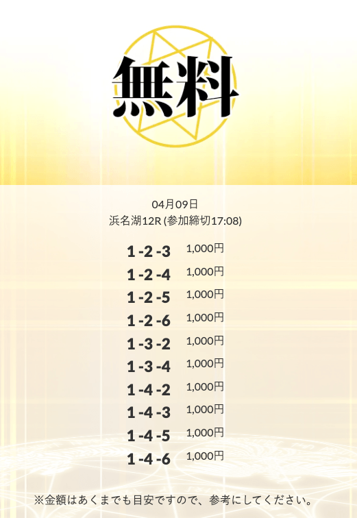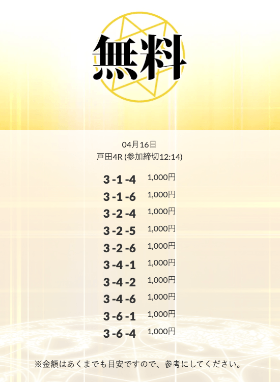’26/04/03 的中無料予想で14,600円の払い戻しを獲得