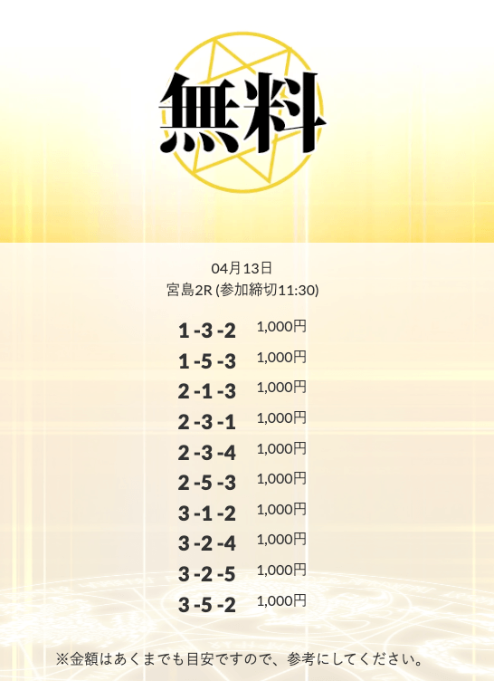 ’25/04/02 的中無料予想で13,200円の払い戻しを獲得