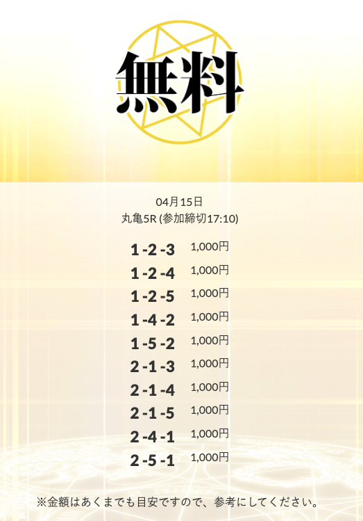 ’25/04/15 的中無料予想で32,600円の払い戻しを獲得
