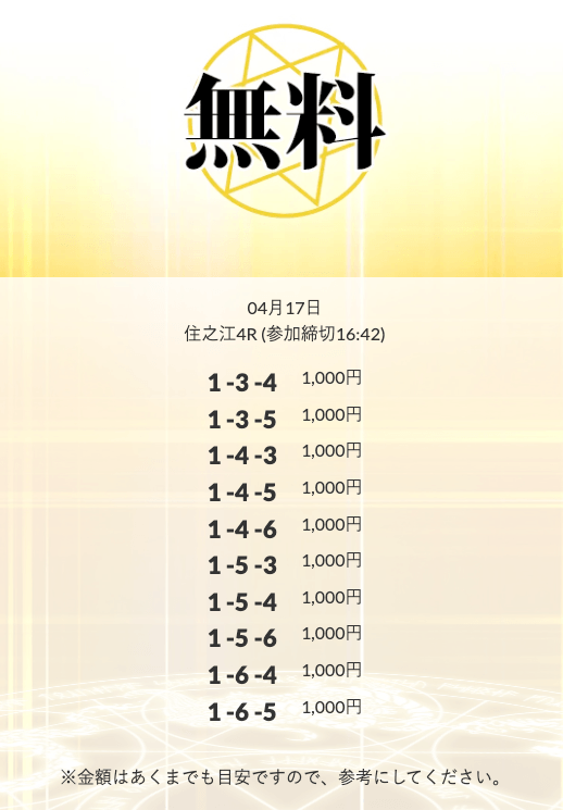 ’25/04/17 的中無料予想で34,200円の払い戻しを獲得