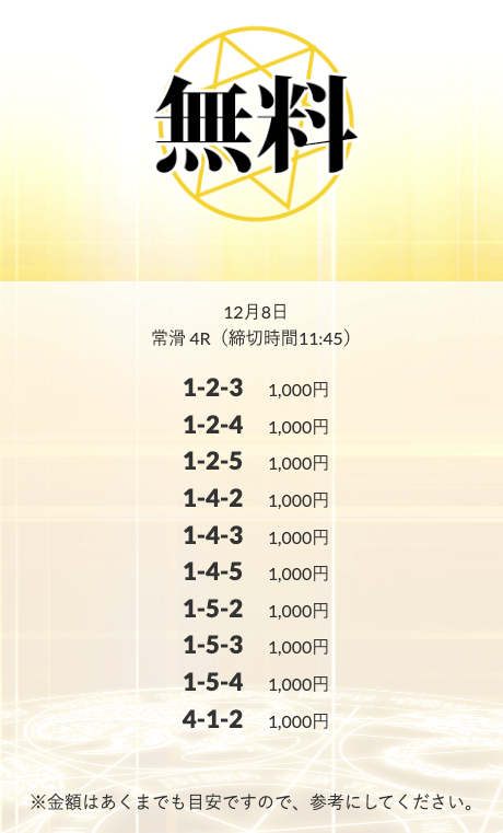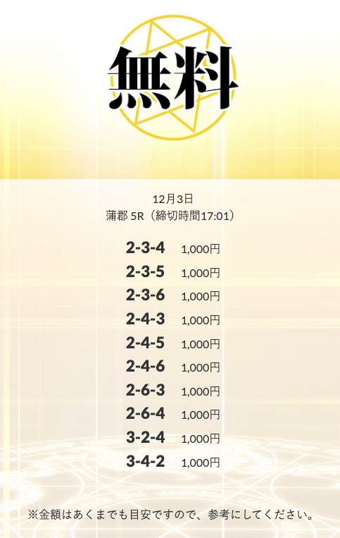 ’25/12/01 的中無料予想で16,600円の払い戻しを獲得