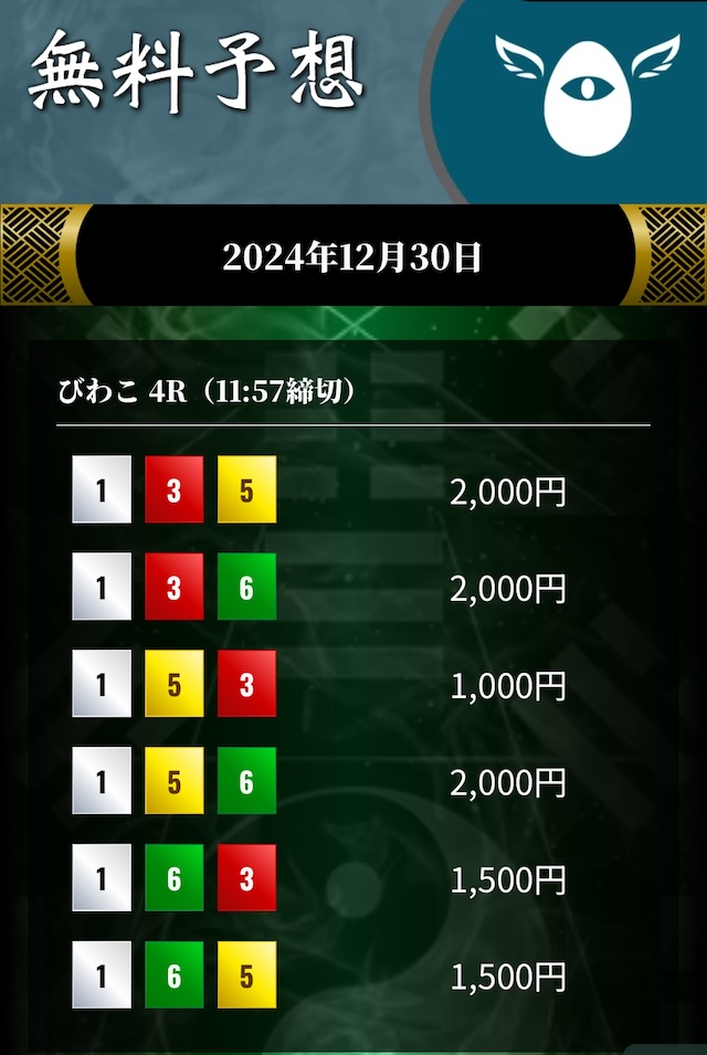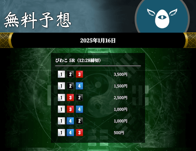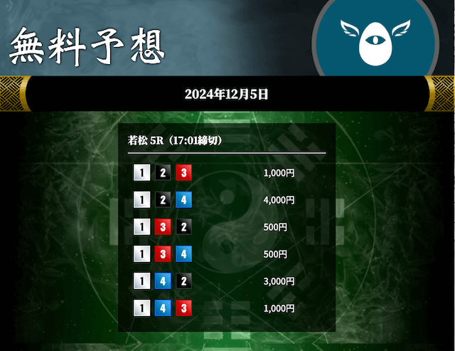 無料予想は登録すれば誰でも見れる情報なので、絶対に捏造できません。