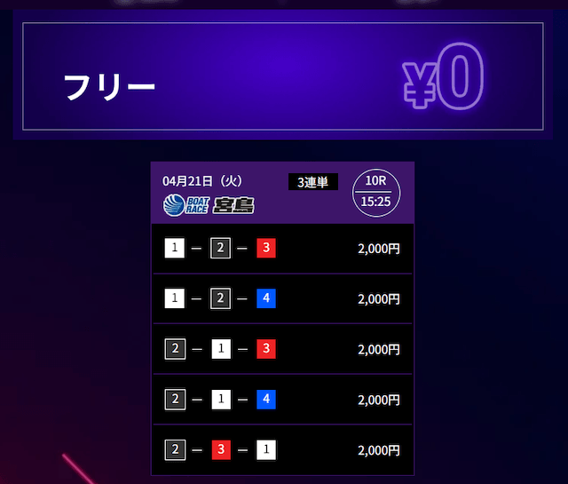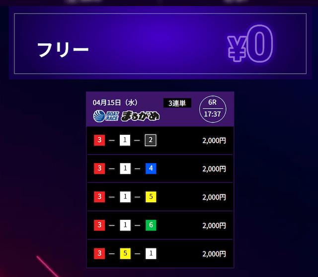 ’26/04/21 的中無料予想で61,000円獲得