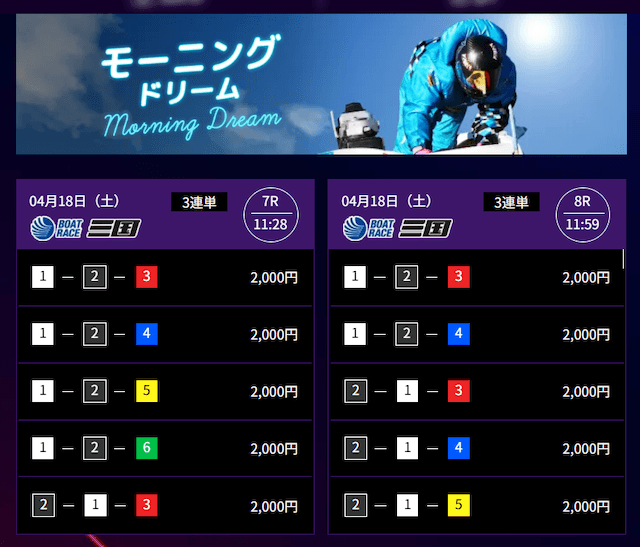 無料予想が連日的中して資金が増えたので、モーニングドリームに参加しました。