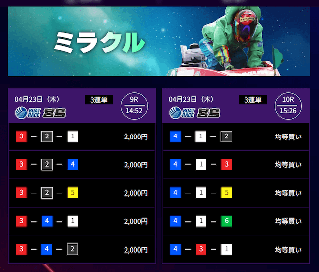 結果、無駄な買い目を省きつつもしっかりと当たって稼げる予想の公開を可能にしているようです。