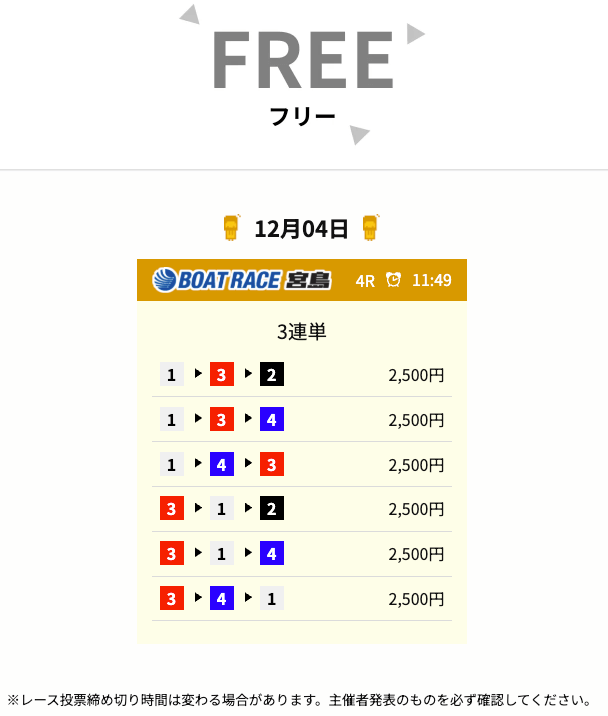 無料予想では、堅実に当てつつも利益を積み上げる「再現性の高い予想」を実現しています。