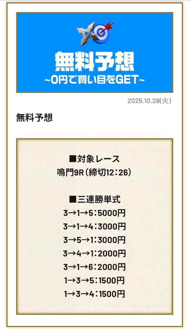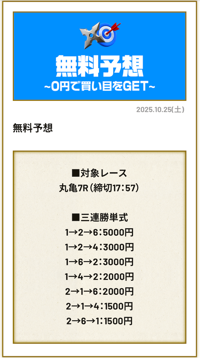 無料予想に初参加【2025年10月6日】