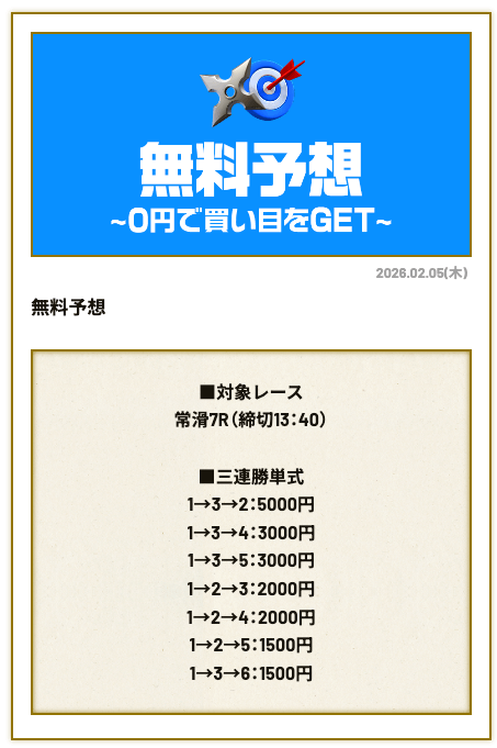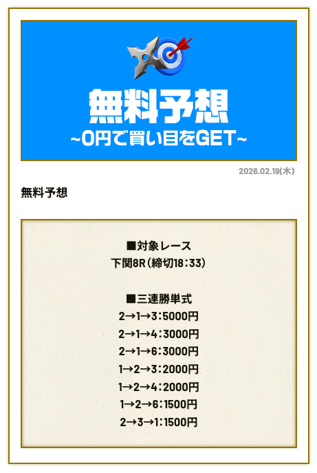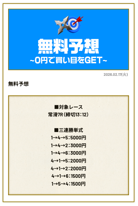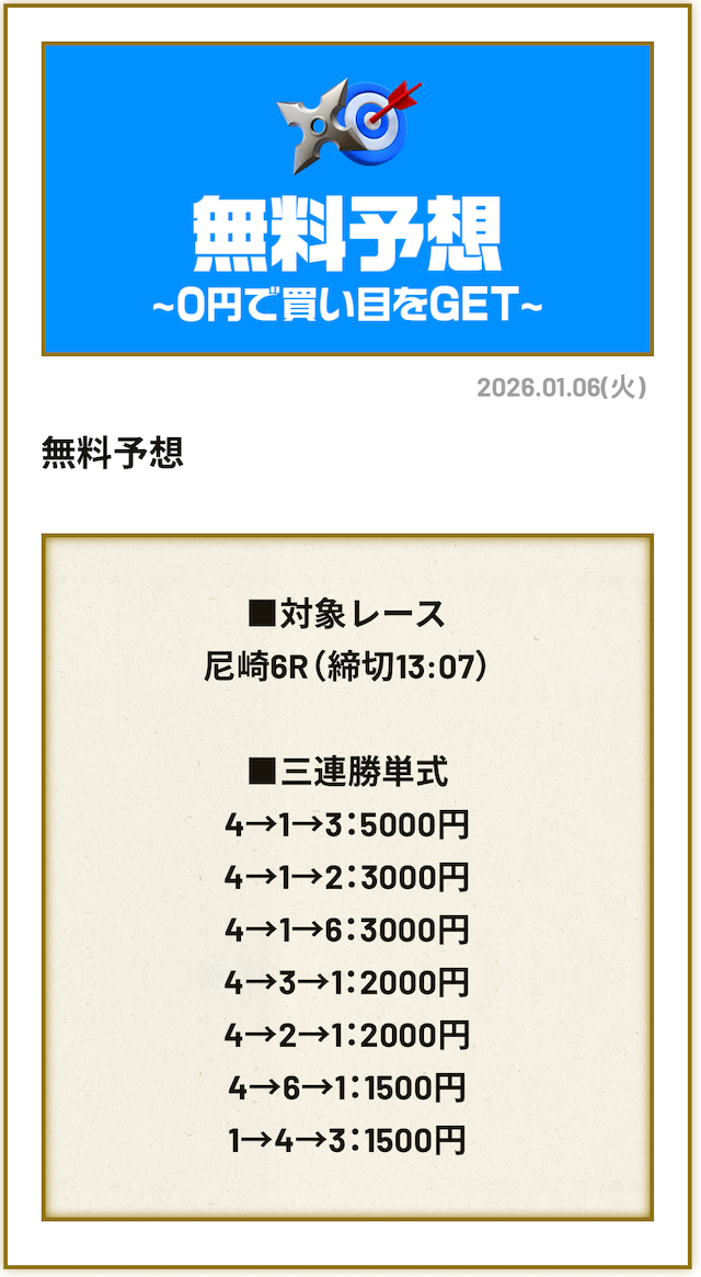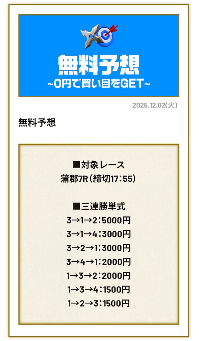もう少し登録特典とか、有料予想の料金とか安ければ文句無しかなー。 - 2025/10/08